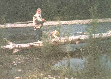 The rain stopped about 3:30, and we went on through Quesnel to Prince George, camping about 20 km north of P.G. on the Salmon River at an old mill site. It was still overcast, but dry and clearing. The next morning, traffic was heavy, strings of motorhomes and RVs headed north, but that was no problem. Most were traveling faster than our "Sedate and Dignified" 90 klicks max. (55 mph).