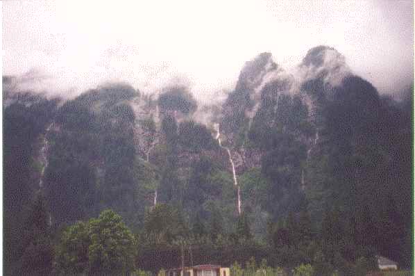 Waking in the morning to a slight drizzle, we lazed around in the hot spring pool until we couldn't stand it any more, and broke camp about 11:30.