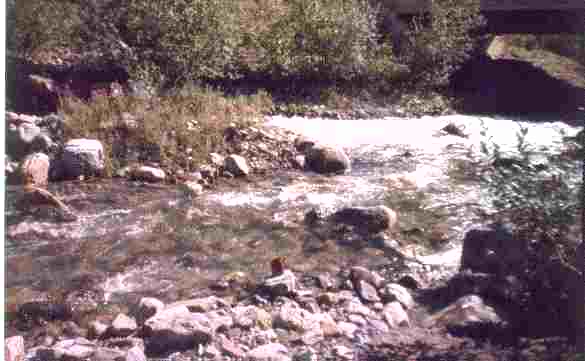 Still running lousy, I got some injector clean stuff in Rancheria, and it seemed to be cleaning up the problem. By the time we reached Teslin it was running OK, still missing on occasion. We stopped and soaked for a while at Liard Hot Springs. If you are travelling the Alcan, that is a for sure DON"T MISS IT! Wonderful pool about 150 ft long, fine gravel bottom, with a 3 foot falls in the middle to let the water pound on your back, about 105 degrees. The source runs about 135 and with cold water running in from the surface, cools rapidly from the high end of the pool to the low end. Just by moving around a few feet you can adjust the temperature to your liking.