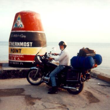 It was a hot, muggy night, mosquitoes, etc. but I slept well. With morning I went back to Key West, got some photos taken of me at the marker of the Southernmost limit of the US, another in front of Barefoot Bob's Bar in the tourist area, caught a noon meeting at the southernmost AA club in the US. That done, I decided I had seen all I wanted to see and done all I wanted to do in Key West, and started back to Mainland Florida.