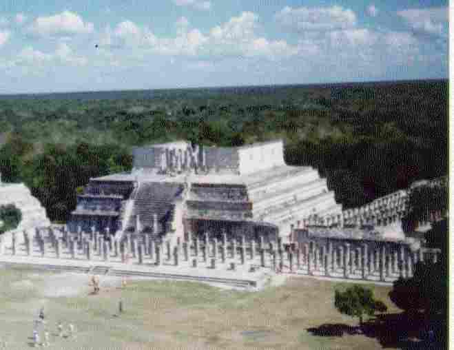 A MAYA center in northern Yucatan (Mexico), became the capital of a large state during the TOLTEC domination in the 11th and 12th centuries. The name means "mouth of the well of the Itza" in Yucatec Maya. A small farming village was established at Chichen by about 500 BC. By AD 700, the site had become a substantial civic-ceremonial center. Pilgrims came from afar to cast offerings into Chichen's cenote, a natural well sacred to the rain god. Palaces, temples, and even an astronomical observatory built in the Puuc style of Maya architecture point to relations with UXMAL to the west. In AD 987, Toltecs from central Mexico, led by a man named Kukulcan, an alternate form of the name of the Toltec deity QUETZALCOATL, took over Chichen. Aided by the Itza, a Mayan people from the Gulf Coast who had already made inroads at Chichen, the new rulers quickly dominated northern Yucatan and built Chichen into a hybrid Toltec-Maya capital. The focus of the new civic center was the Castillo, a temple-pyramid dedicated to Kukulcan. The nearby Temple of the Warriors echoes the design of an important temple at TULA, the Toltec capital in central Mexico. The largest ball court in Mesoamerica faces the Temple of the Warriors across a great plaza, from which a causeway leads to the sacred cenote. More temples, ball courts, and causeways, along with palaces, dance platforms, and sweat baths, fill out the public sector of Chichen. The murals and reliefs that adorn most major buildings give information about Chichen's history and organization, especially the relations between the Maya and their Toltec overlords. In the late 12th century, the ruler of MAYAPAN led a revolt that brought about the sack of Chichen and Mayapan's emergence as the new capital. The Itza fled south to Lake Peten Itza and established the town of Tayasal, where their descendants remained independent until 1697. Chichen never regained political importance, but the cenote cult flourished amid its ruins, even after the Spanish conquest. Early colonial documents and traditional Maya histories complement the archaeological record with a wealth of information about Chichen's role in the history of Yucatan. Excavations at Chichen, mainly by the Carnegie Institution of Washington and by the Mexican government, have emphasized exploration and reconstruction of Toltec period remains.