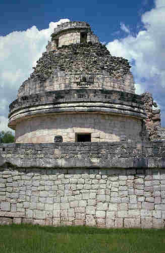![]() El Caracol The Celestial Observatory | ![]() Typical Mayan Palapa Thatched Roof, Mud/Wattle Walls | ![]() Looking across into Sacrificial Cenote (Well) |
