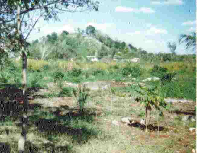 It took 2 hours in the morning to dry the tent and gear from the dew. The orchard campesino came into the orchard about 7:30 and we talked a little, then he was off to work, pruning and irrigating. I left at 8:30 toward Uxmal ruins, shot a picture of the pyramid from a distance, but I had to pass up going in as I was down to $80 pesos, with this day and night to go before my check would be deposited so I could visit the magic money machine.