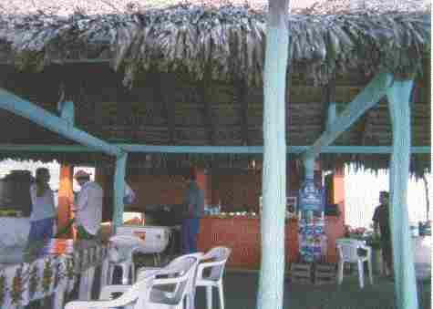 The bay must be very shallow, no deeper water colors. I saw fishermen in the bay casting sling nets, little better than waist deep out 200 meters. From where I sat I could see the head of the bay, but the outer reef was over the horizon. I wore away the day sitting in the shade, pleasantly doing nothing. It is a perfected art form and takes a lot of practice. A song came on the radio in the palapa "Gracias, Senor, por esta dia de mi vida, Gracias mi Dio", "Thank you, Sir, for this day of my life, Thank you, my God".