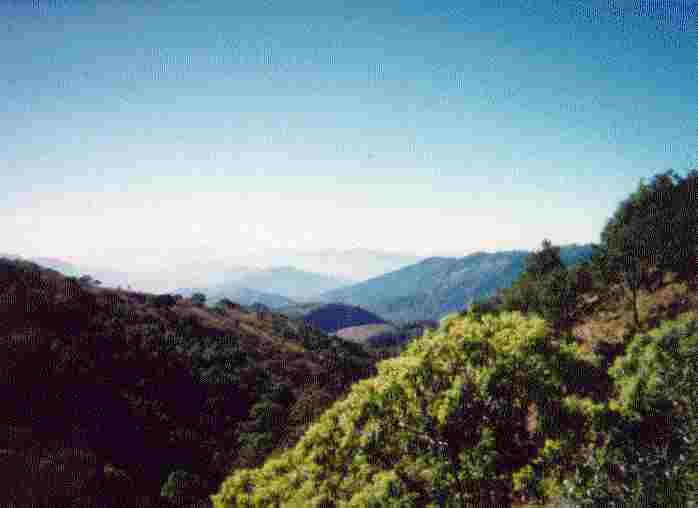 At the top of another pass not far on, I stopped to drink some water and one of the most memorable occurrences with the people. I was watching a fellow come up the road with a load of firewood on his back and twice that amount on the burro being led behind him. He set his load down, we talked for a couple of minutes, I should say communicated haltingly. I pulled a dry tortilla left over from the night before from my pocket and crunched it. Jorge said, "Un momento, senor", shouldered his load, started the burro and headed up the side of the road. In just about 5 minutes he came back with a thick foot diameter corn tortilla ladled with black beans and handed it to me. Jorge would take nothing for it, not for his esposa, nor for his ninos. He said, "No senor, mi casa es su casa." I almost broke out in tears with his graciousness and concern for me. We talked a while longer, then we both had to go our ways.