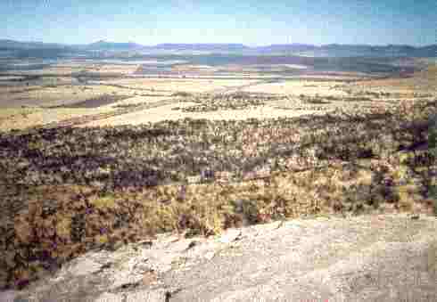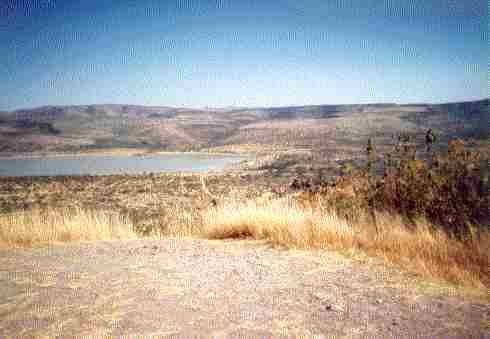 I camped the first night about 40 miles south of Saltillo, having blown right through Monterey. Saltillo is a clean prosperous town with Chrysler and GM plants, high and dry, about 8000 feet. It was down to freezing by morning. I made coffee and was rolling by 8am across the high desert and on through Zacatecas. About 30 miles beyond Zacatecas are the Quemada ruins. I spent half the day climbing around, up and over the ruins of Quemada built by the Aztecs. Free standing rock walls and fences extending for miles, stone pavements dating from 200-800AD, 170 miles of roads radiating out from Quemada to over 200 villages and estanciones spread over a nice valley. A truly impressive ruins. It was all plastered with adobe in ancient times, of which a little remains. I was much impressed with the rock and earth filled dam they had built to provide their irrigation water, a quarter mile long and appearing to be 30 or 40 feet high from where I was on the top of the pyramid a thousand feet above it.