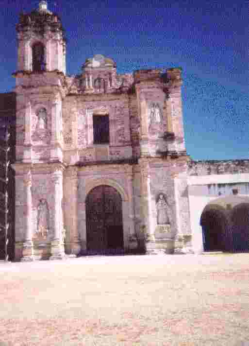 I reached Tlaxiaco needing gas at noon. On the map it looks like maybe 50-60 miles from the coast and it is nearly three times that far. On a ways was a Dominican convent under reconstruction, San Jose Tepesculola, where I stopped and took a couple of pictures. A typical old Spanish mission and church. The interior was still beautiful.