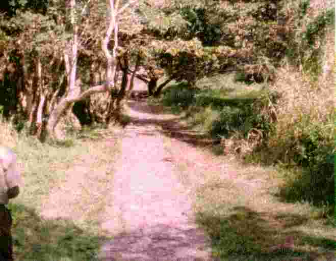 In the morning I found that I had pitched camp alongside a small lake that I could not see in the pitch-black moonless night, about 30 feet from the shoreline. The sidewalk was a "Bird Watchers" path around this small lake. I got coffee water out of the lake, heated enough to take a spit-bath, and washed some clothes. They were dry in an hour after the sun came up with a nice breeze.