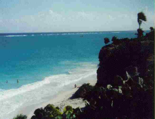 I continued on to Tumul Ruins. It was a beautiful walled city, covering about 30 acres, backed by the cliffs down to a beautiful Caribbean beach. Built of volcanic stone, fairly crude, about 1400-1600 on a volcanic outcrop/fissure. All else around is limestone.