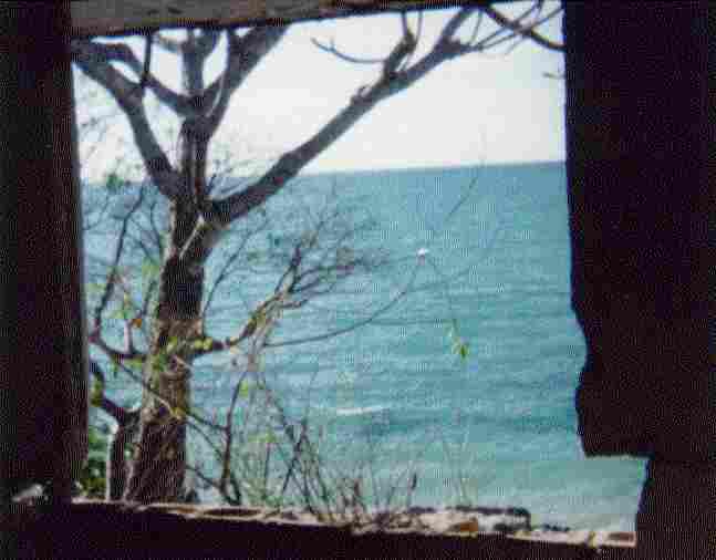 School kids came to the plaza during a recess and the teams of boys and girls played soccer until time to return to class. The sky clouded over about 2:30, cooling down a little. I rode around town a little, then south and west out of Campeche about 15 klicks, where I found a cutoff piece of highway that was abandoned due to cave-in and washouts from the hurricane that had hit the area a couple of years before. I found a trail down to it, rode back along it about 1 1/2 klicks, figuring I could camp along it somewhere and go swimming in the Gulf. I found an abandoned beach house, 3 rooms, about 25 x 30, one room of which had a bed platform. I parked the bike out of sight, went down to the beach and soaked my feet, cooled off, hauled my gear in and setup camp in the house. After I inflated my air mattress I stripped down and sacked out for siesta about 4:30. The cool breeze coming in the window - or where the window had been - was very welcome.