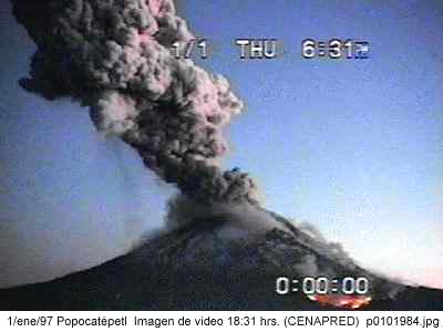 ![]() Popocatepetl Volcano in Distance, Just beginning an eruption. | ![]() Popocatepetl Official Photo The Eruption of January 1997 |