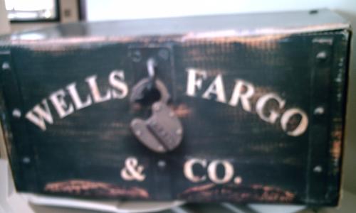I obtained a somewhat less than good photo yesterday of a Wells Fargo strongbox. My nephew Tim will build two of them to look somewhat authentic for the back of the hack to be used for storing camping, camera and computer gear, and as auxiliary seats for additional passengers.